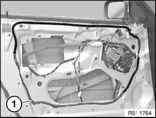 NOTE: Position of butylene tape (1) on inner door panel is identified by center punch marks.