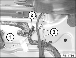 Secure lead (1) with 6 mm dia. butylene tape (2) (sourcing reference: BMW Parts Service).
