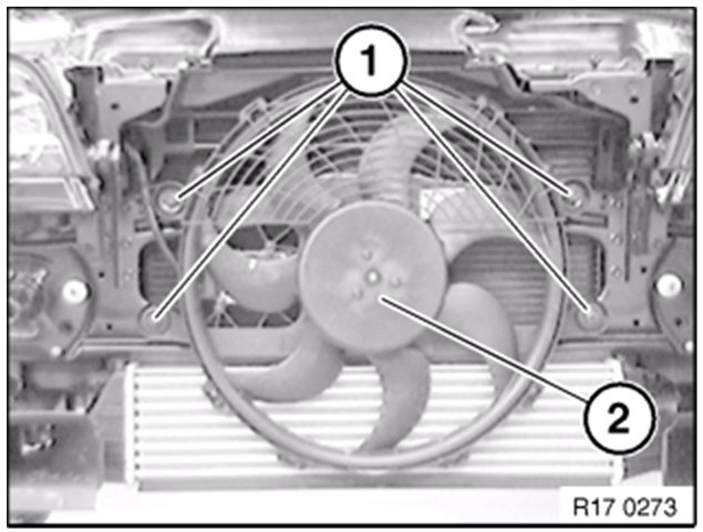 Removing and Installing / Replacing Complete [1][2]Auxiliary FanM57, M57TU only: