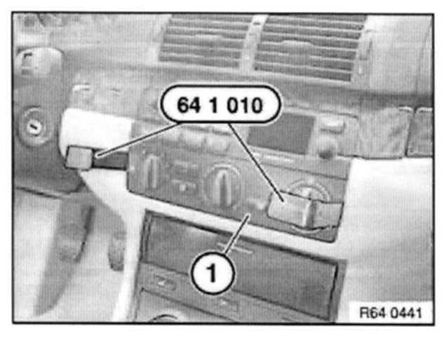 Pull out heater controls (1) with special tool 64 1 010.