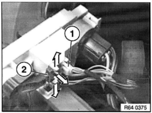 Unlock retaining clips and pull out microswitch (2) in direction of arrow.
