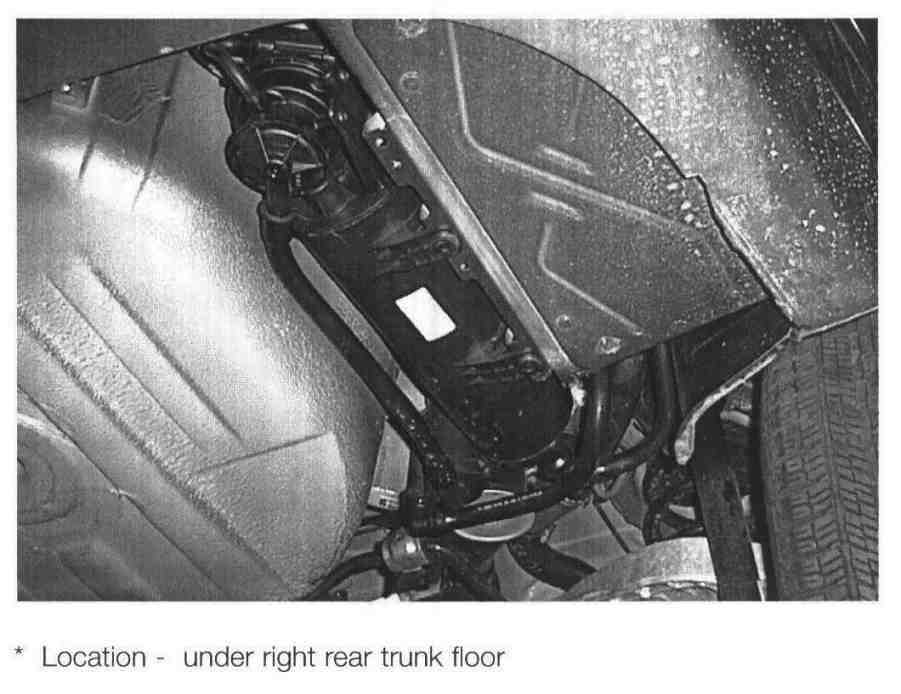 The location of the LDP and charcoal canister have changed. This combination assembly is located under the right rear trunk floor.