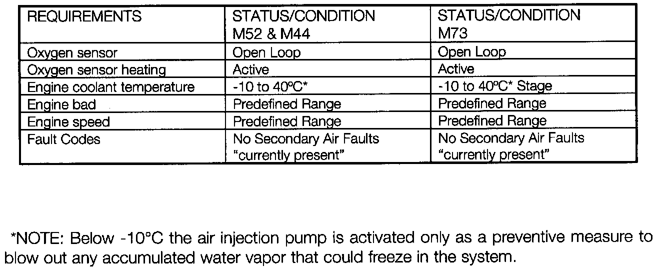 Conditions for Secondary Air Pump Activation:
