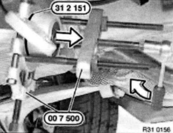 Detach bracket with special tool 00 7 500/31 2 151 from control arm.