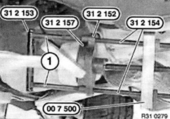 Attach special tool 31 2 153 with extensions (1) from puller set to control arm opening.
