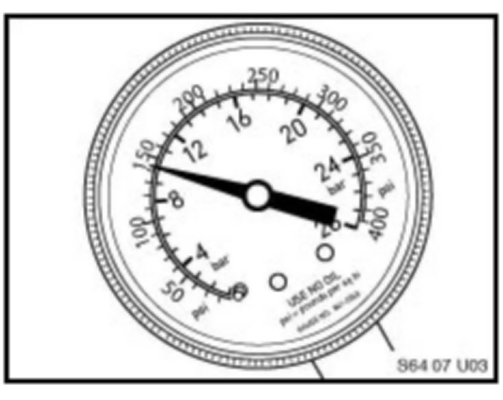 16. [NEW] Monitor the pressure over a period of 2 hours. Pressure should remain constant at 10 bar (150 psi).