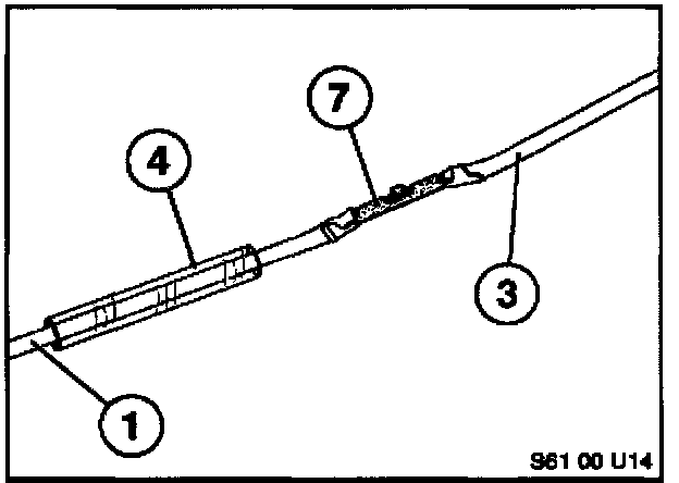 6. Clip the female connectors from one end of each wire, and strip off 1/8" (3 mm) of insulation. Double crimp (wire crimp and insulation crimp) the wires to the butt connector (7) to join the wires together. Slide on the shrink tubing (4).