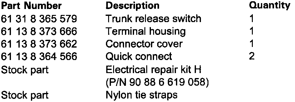 An interior trunk release switch can be retrofitted as a customer pay item. (The installation will take approximately 1 hour)