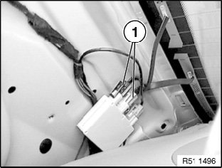 Disconnect plug connection (1), release nut (2) and secure leads to rear window with adhesive tape.