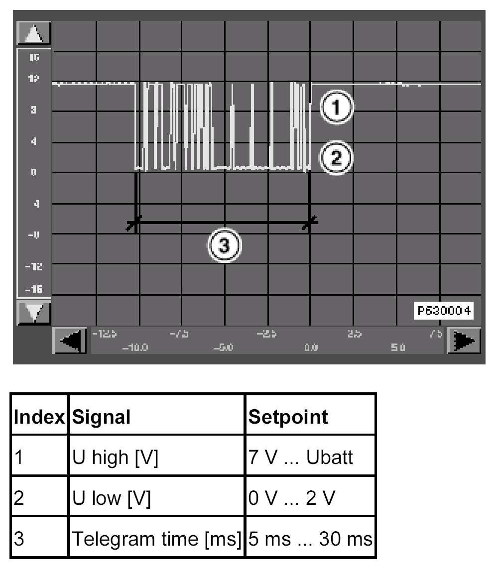 NOTE: When measuring, the number and sequence of individual pulses may differ compared to the example given. It is important to assess the entire signal in accordance with the table.