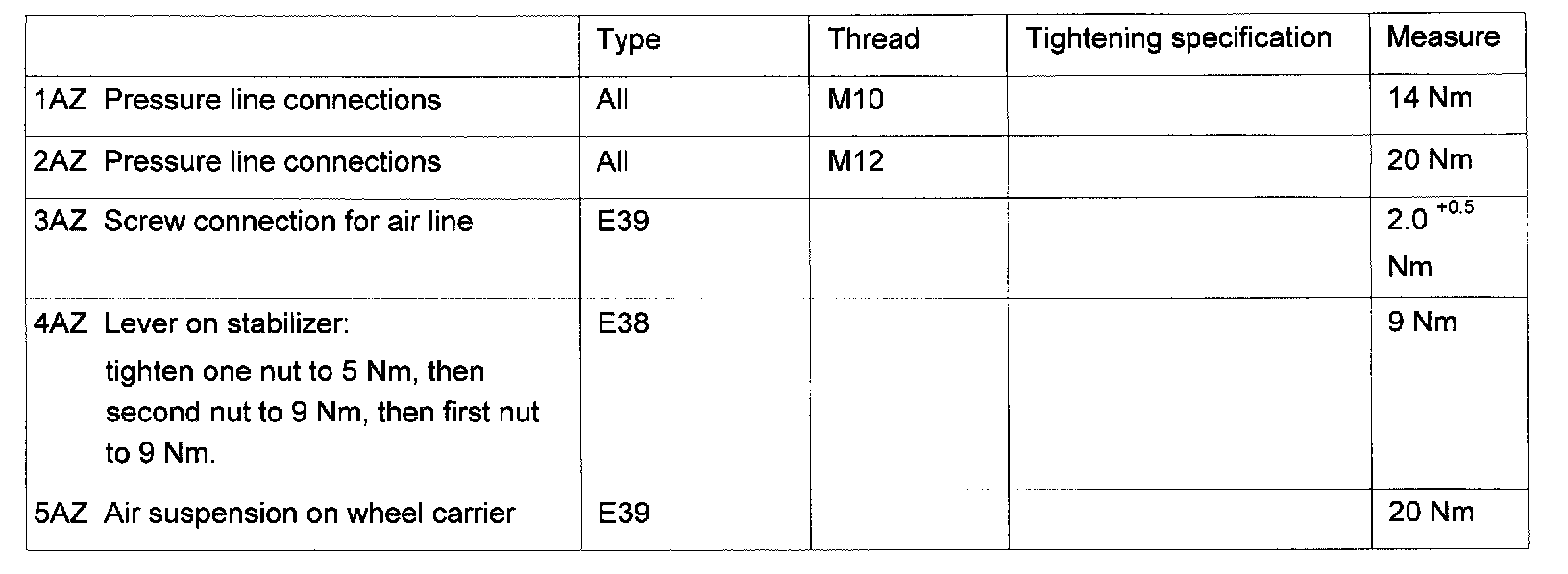 Tightening Specifications