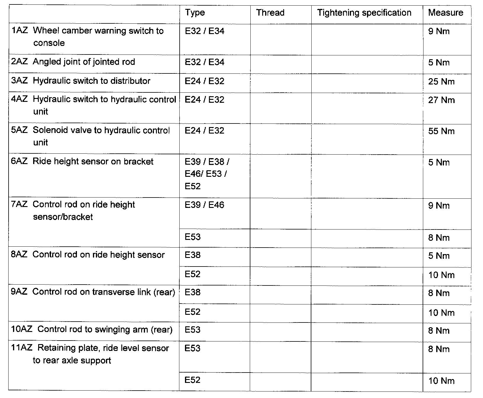 Tightening Specifications