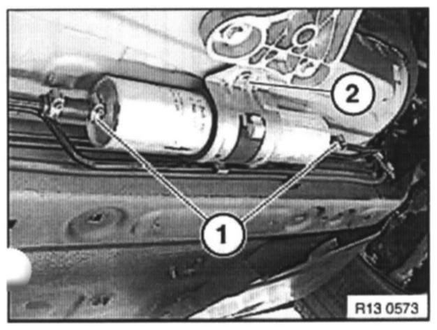 Disconnect fuel teed line at points (1) with special tool 13 3 010.