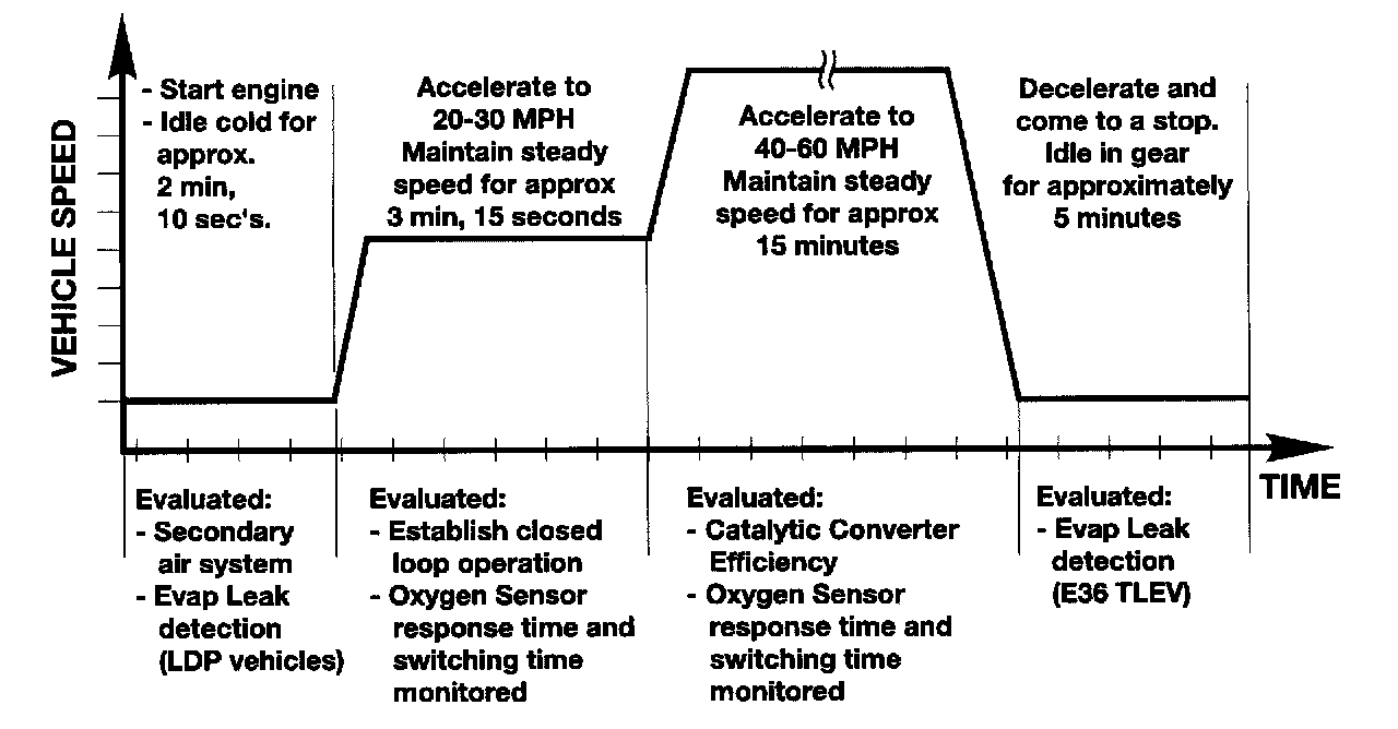 NOTE: Due to the complexity involved in meeting the test criteria within the FTP defined driving cycle, all tests may not be completed within one "customer driving cycle". The test can be successfully completed within the FTP defined criteria, however customer driving styles may differ and therefore may not always monitor all involved components/systems in one "trip".