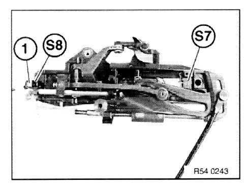 - Pull off micro-switch (S7). Lift out clip (1) and pull off micro-switch (S8).