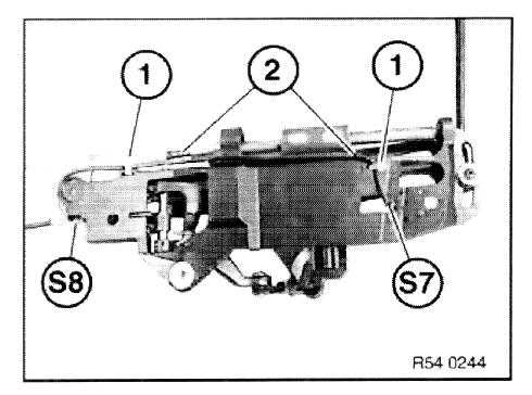 - Guide pins (1) on micro-switches (S7) and (S8) must not be damaged.