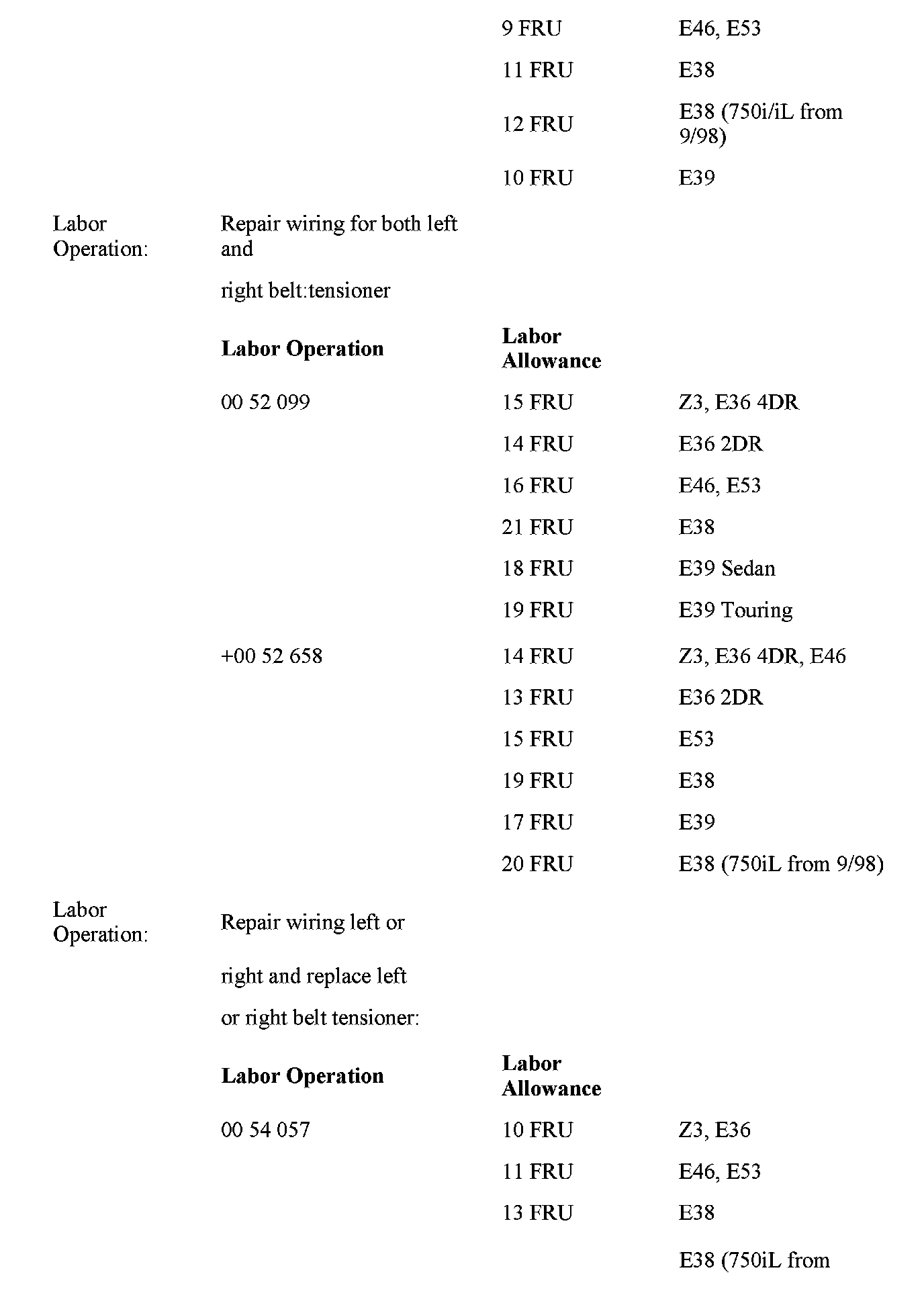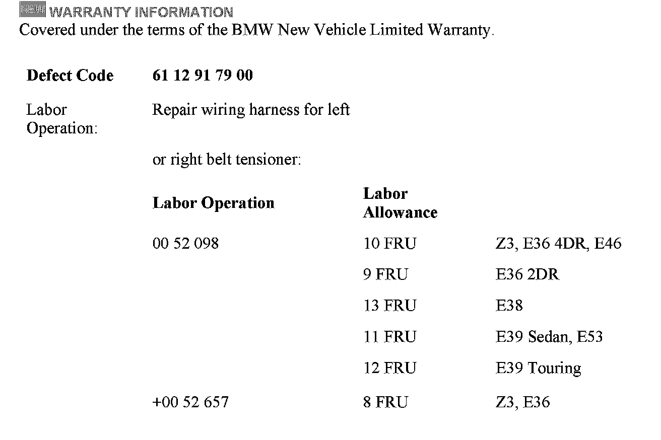 E36, Z3, E38, E39 - manufactured prior to March 1999, with Central Airbag "Trigger" Module (ZAE), Multiple Restraint System (MRS), or MRS II;