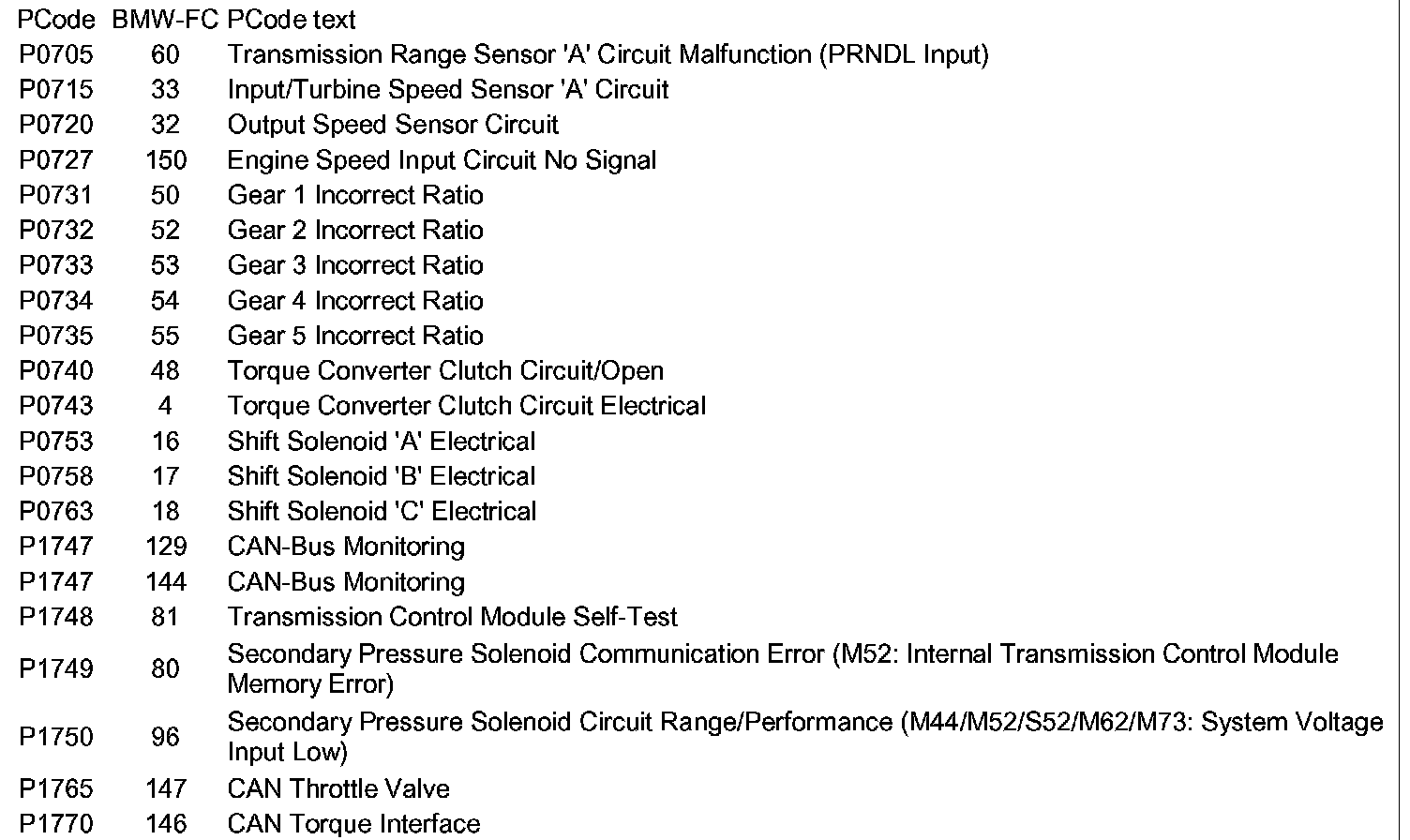 Diagnostic Trouble Code Descriptions