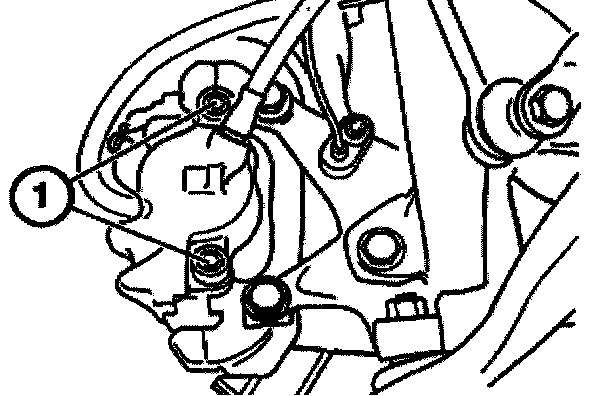 - Unfasten guide screws (1) and lift out brake caliper towards rear of vehicle.