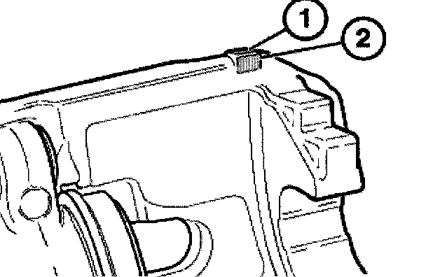 - Clean contact surfaces (1 - 2) of brake-lining tee heads on brake caliper and thinly coat with anti-squeak compound.