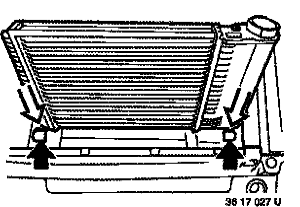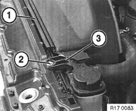 Pull off sealing lip (1) towards top. Release hexagon screws (2) on left and right. Remove brackets (3) on left and right.