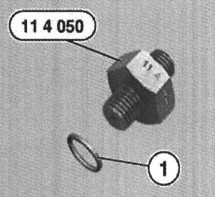 Install special tool 11 4 050 with sealing ring (1) in place of oil pressure switch.
