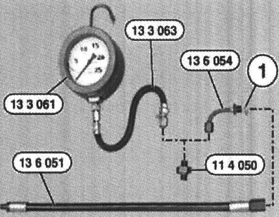 Install special tool 13 3 063 and special tool 13 3 061 (pressure gauge).