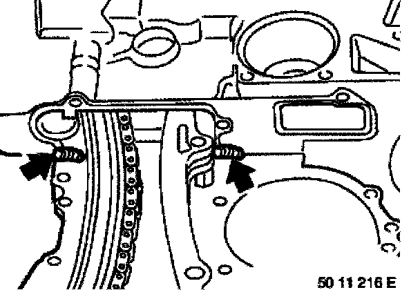 Installation: Clean sealing surfaces. Drive dowel pins into timing case cover in such a way that they protrude by about 2 to 3 mm.