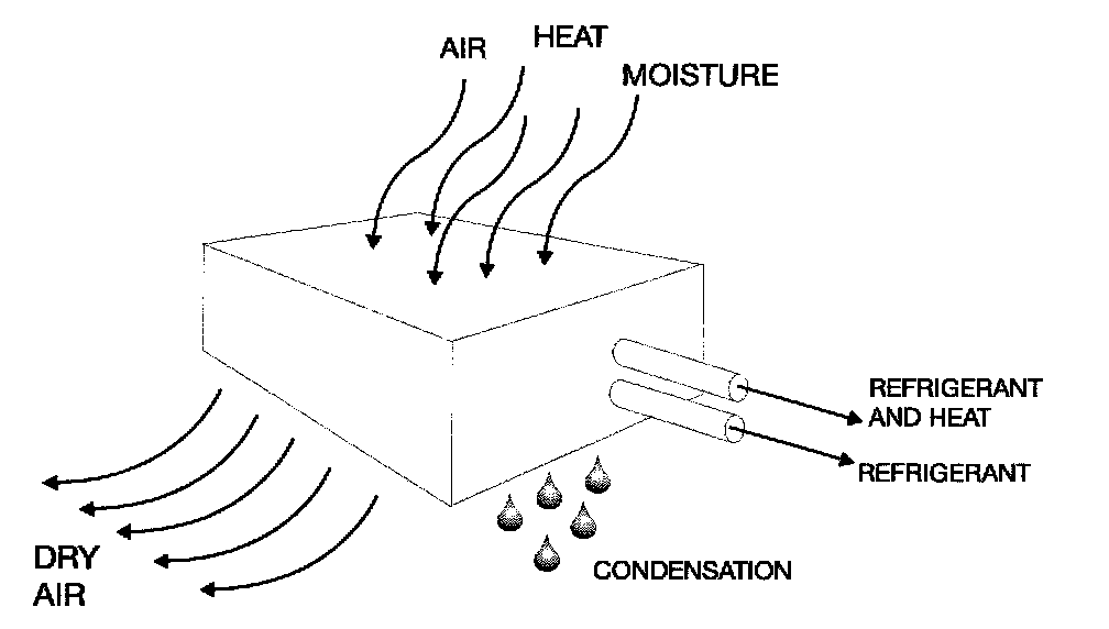 By removing moisture and lowering the humidity, an A/C system can achieve passenger comfort at higher temperatures. The reason for this is that the human body cools itself by allowing moisture on the skin to evaporate.