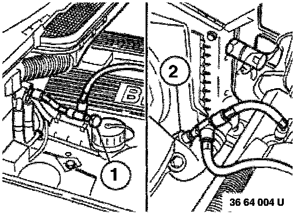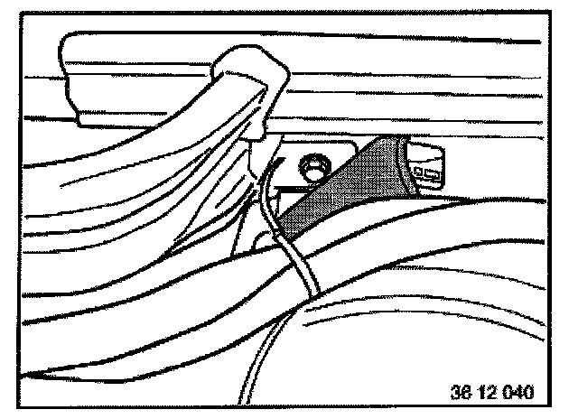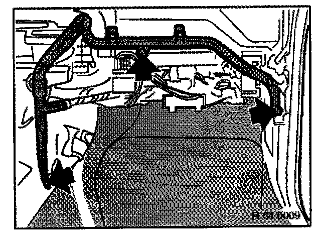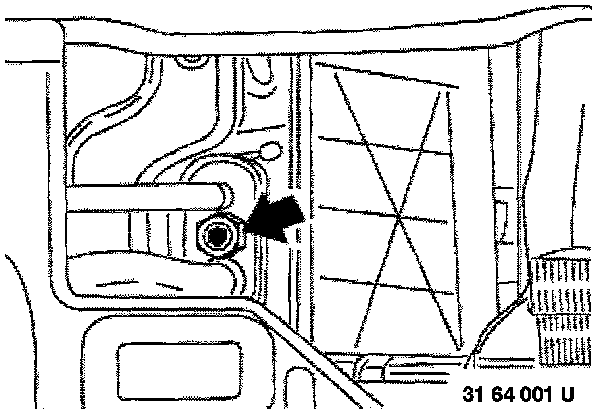 - Unscrew screw and place water flange to one side. Blow air into feed hose to prevent residual coolant in heater core from running out on the carpet.