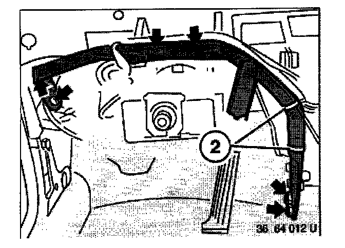 - Cut off cable strap (2). Remove screws and remove reinforcement pipe for steering column.