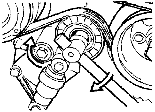- Insert Allen key in tensioning roller screw and turn slowly clockwise. This compresses the tensioner, thus slackening the drive belt. Remove drive belt.