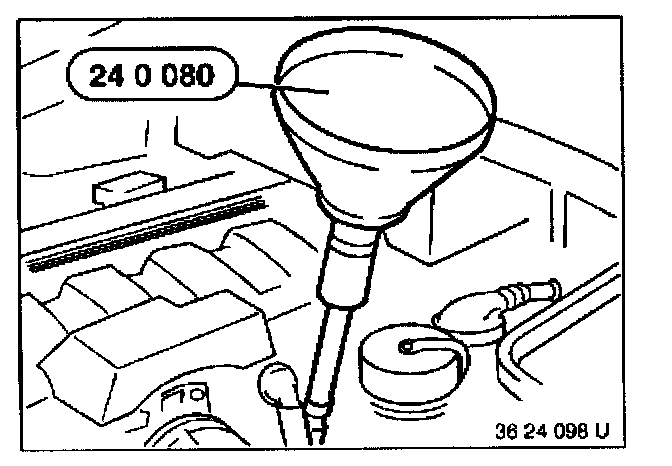With special tool 24 0 080 top up with automatic transmission fluid.