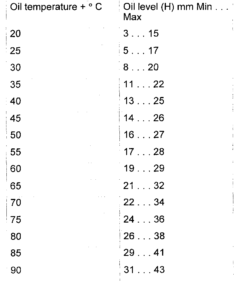 Using following table, correct oil level by draining or topping up.