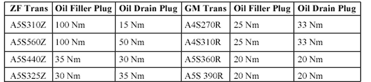 Transmission Filler & Drain Plug Locations: