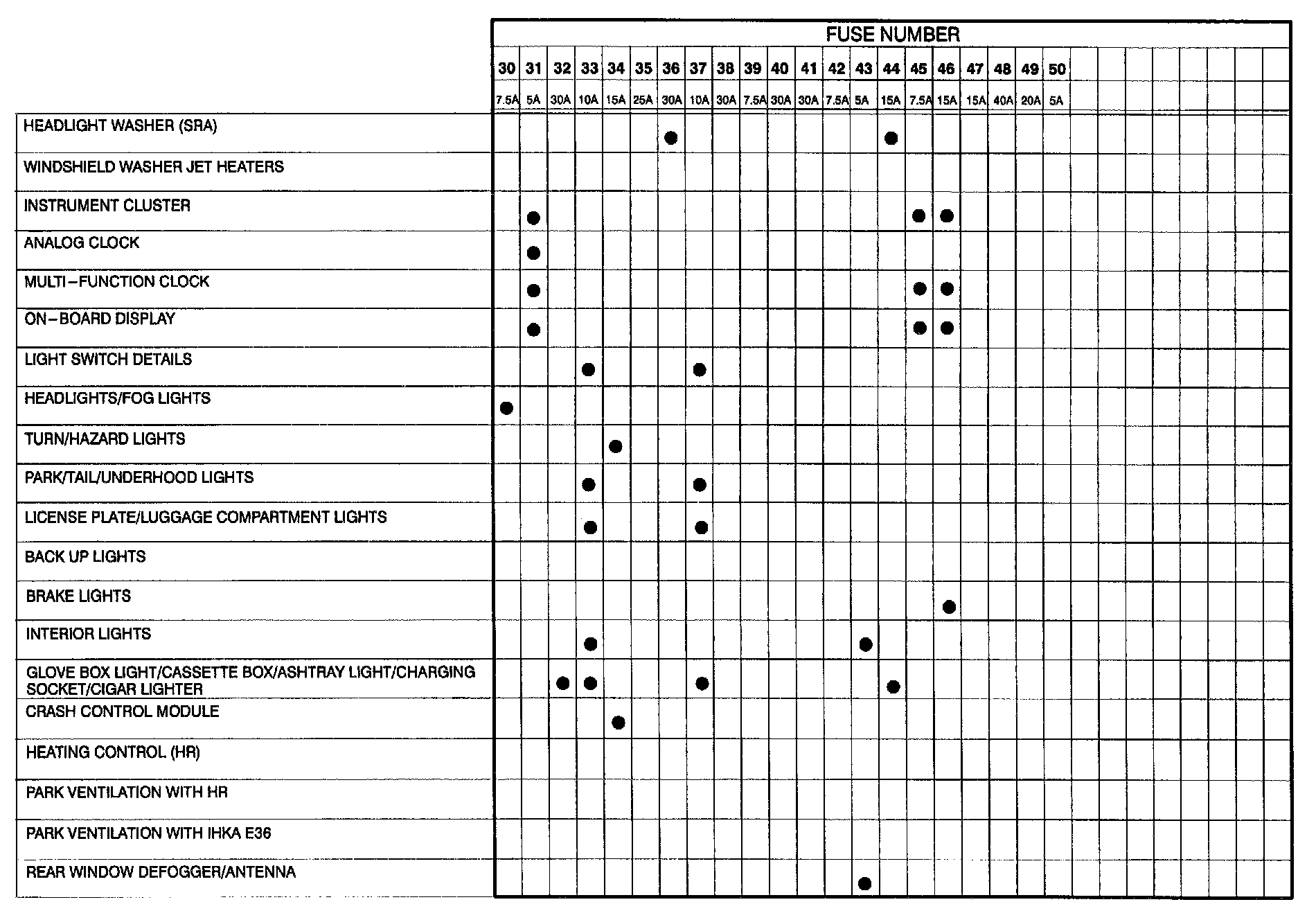 Fuse Locations in Power Distribution Box / Splice Panel / Relay Panel: