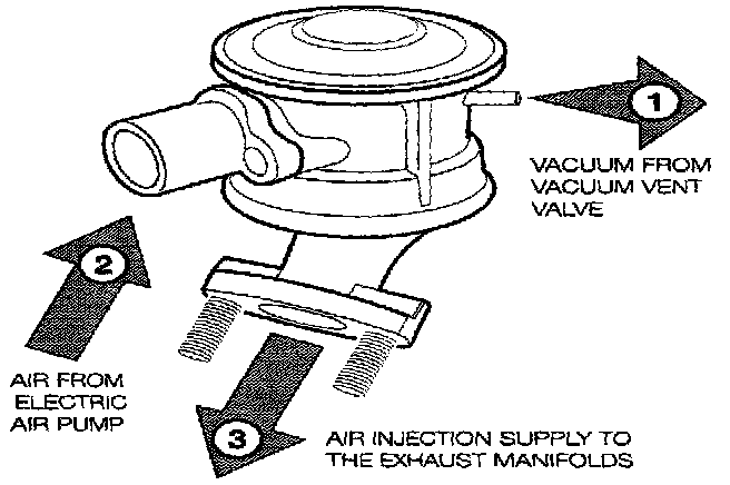 The first is controlling the air injection into the exhaust system. A vacuum controlled diaphragm in the valve will open the passageway for air to be injected when vacuum is applied.