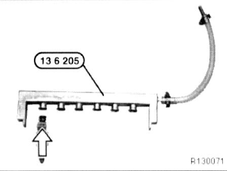 - To remove residual fuel from the injector valves, connect special tool 13 6 206 to a 12 V vehicle battery.