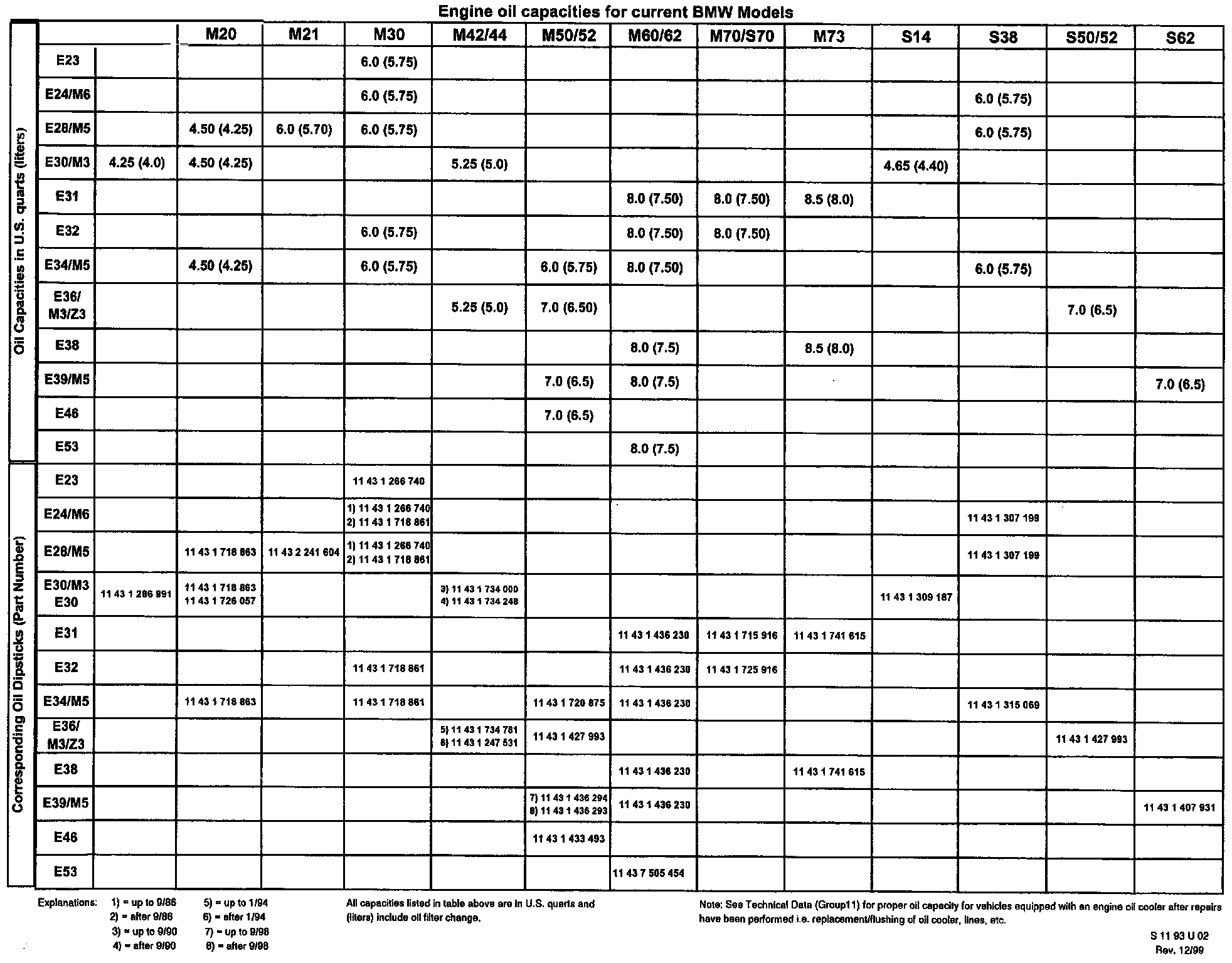 ENGINE OIL CAPACITIES FOR CURRENT BMW MODELS