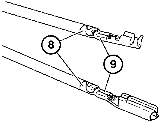 - Check insulation crimp (8) and wire crimp (9) against following illustrations to ensure crimps are correctly located.