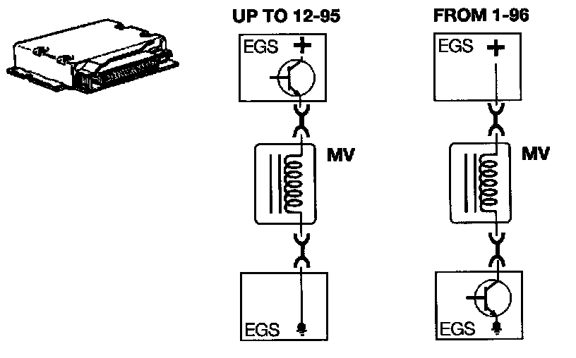 Power stage control of the valve body solenoids was changed from switched power to switched ground.