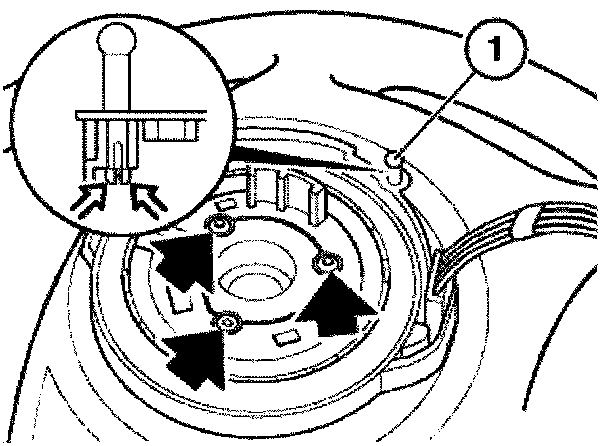 NOTE: A new contact ring is arrested in centre position with a screw. This screw must be removed after contact ring has been screwed to steering wheel.