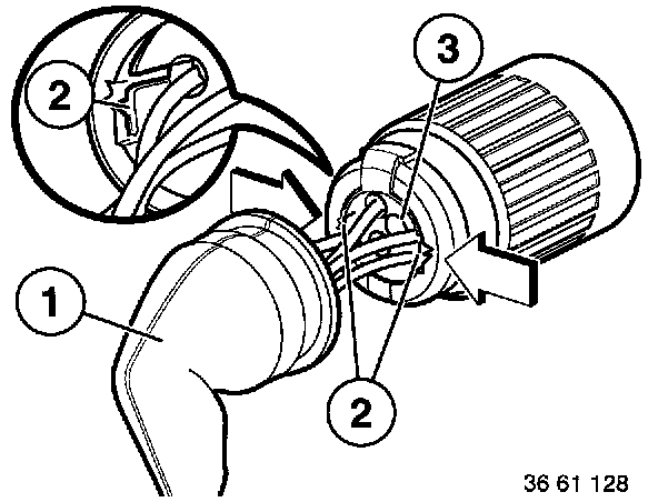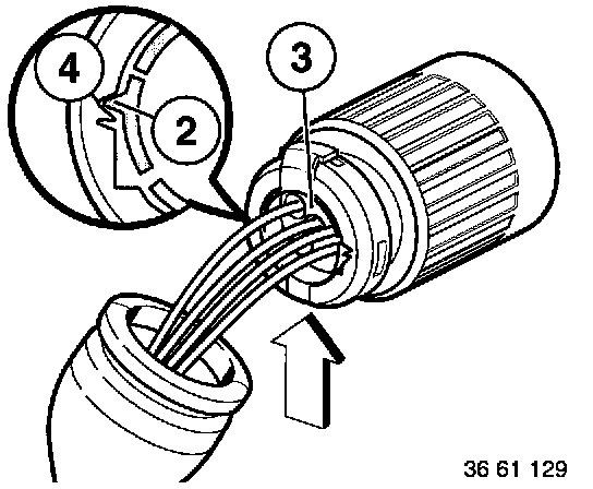 - Slide internal connector (3) in direction of arrow until retaining lugs (2) lock into locking groove (4).