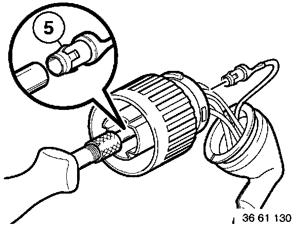 - With special tool 61 1 132 (ejector), press back arrester hook (5) of appropriate contact and pull out cable.