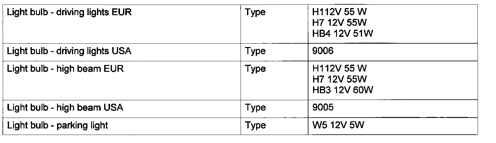 Bulb Specs.: