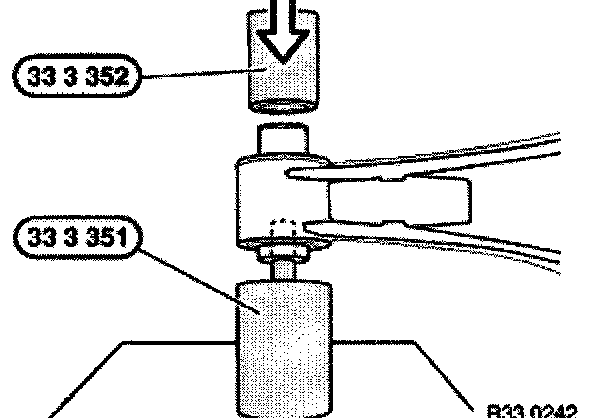 Press out rubber mount with special tool 33 3 351/352.