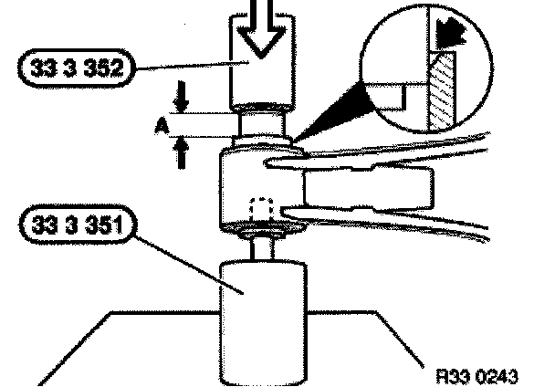 Press in rubber mount with special tool 33 3 351/352 so that it is flush.