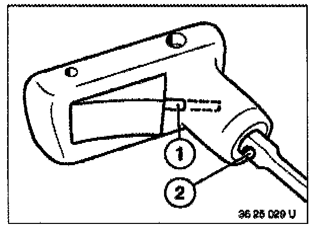 Engage pin (1) of button in bore (2) of pull rod.