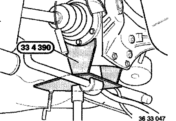 Support final drive with transmission hoist and special tool 33 4 390.