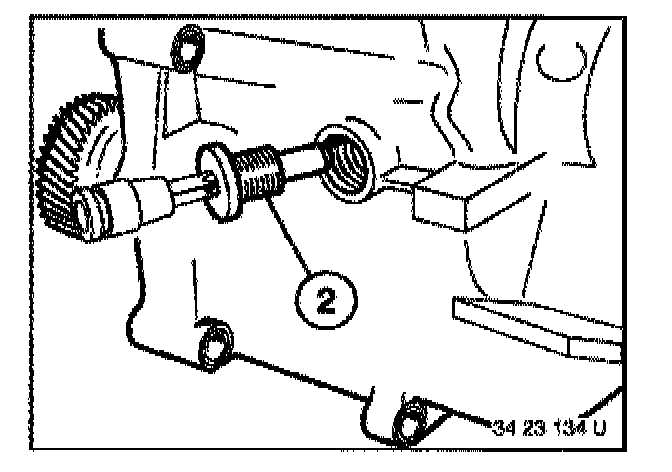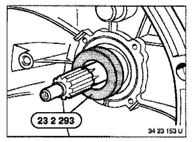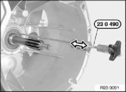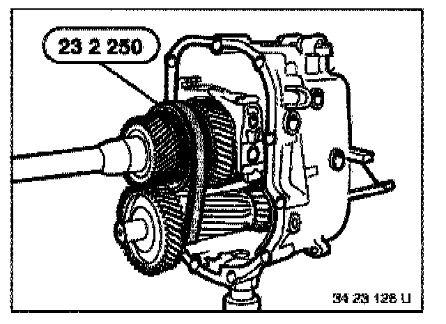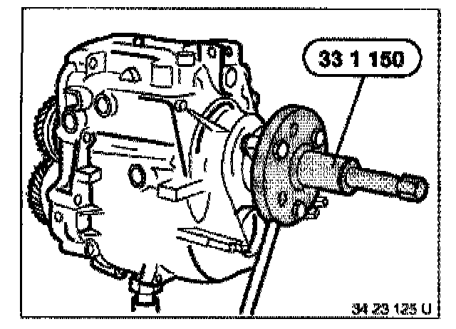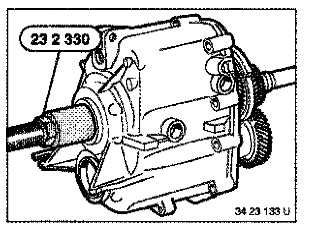 Apply Special Tool 23 2 330 on the output shaft journal. Pull output shaft in to fit tight with Special Tool 23 2 330.